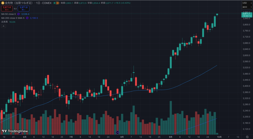 金先物価格は先月から更に急騰して史上最高値を更新しています。