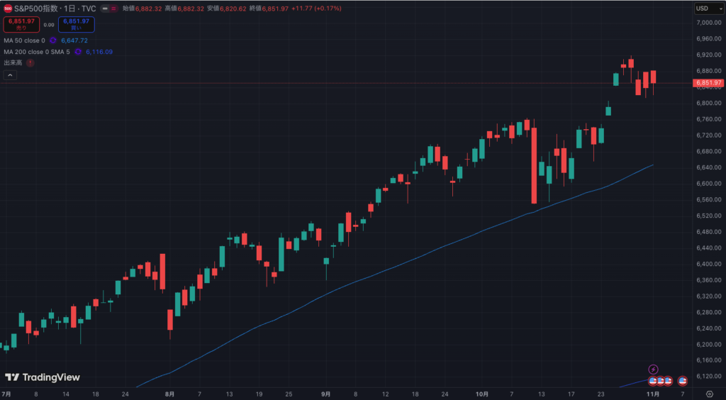 米国株指数のS&P500は月初に一度急落するも反発し最高値を更新しました。