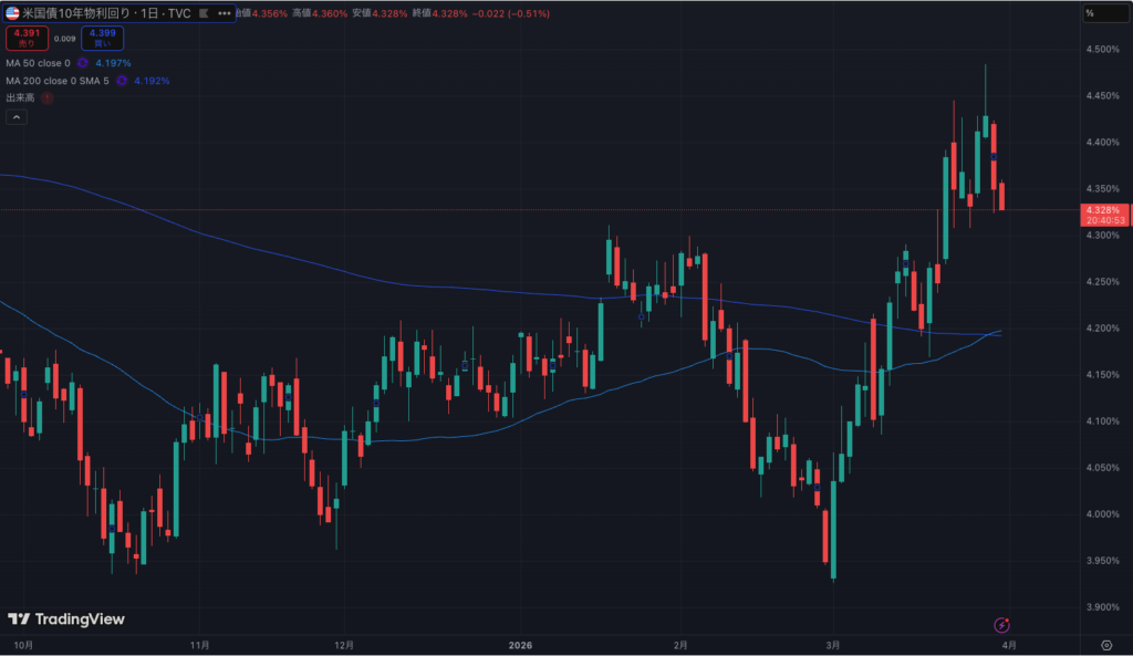米10年債利回りは3月に入って急騰。