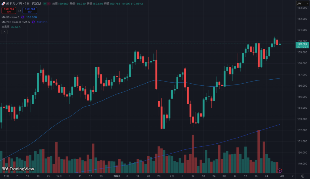 為替ドル円ですが、直近レンジ内で乱高下していましたが、ここに来てドル買いの動きが加速しています。