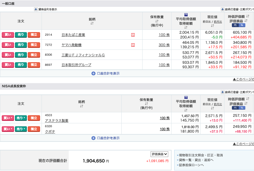 日本株は高配当株をメインに個別株へ投資しています