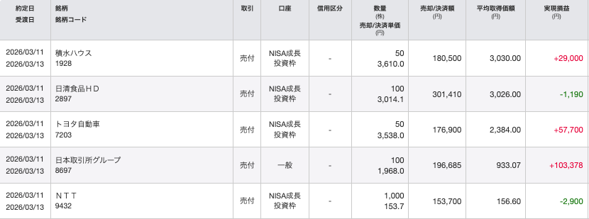 今回、日本株は複数の銘柄を売却しました。